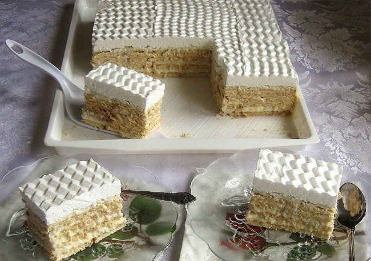 U pleh poredajte keks,preko stavilte sloj fila, keks sloj fila,tako redom pa na kraju sloj fila.