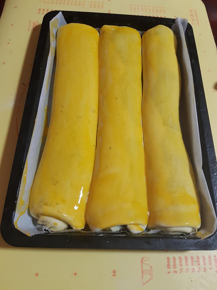300 ml mlijeka4 zlice seceravrecica suhog kvascajaje100 grama maslacazlica soli800 grama brasna1 bjelanjaksusamsir