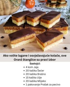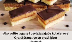 Zadnji korak je priprema glazure od cokolade. U manjoj posudi na blagoj vatri topi se čokolada zajedno sa uljem, sve dok se ne dobije glatka i sjajna smesa. Kada je spremna, topla glazura se ravnomerno preliva preko kolača, pazeći da pokrije celu površinu. Nakon što se kolač ohladi i čokolada očvrsne, dobija se savršeno ujednačen sloj koji puca pod nožem, a topi se u ustima.