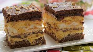 Odvojite zumanjke od bjelanjaka. Bjelanjke umutite sa secerom u cvsrti snijeg. Dodajite jedno po jedno zumance u bjelanca uz neprestano miksanje. zatim dodajte kakao i brasno pomijesano sa praskom za pecivo. Kalup dimenzije 33×23 cm oblozite pek papirom te istresite smjesu za koru. Pecite u zagrijanoj rerni na 180 stepeni oko 25 minuta. za bijelu koru je potrebno umutiti bjelanca sa secerom u cvrsti snijeg te dodati sirce. isteresite u isti kalup kao i za tamnu koru te pecite u zagrjanoj rerni na 150 stepeni oko pola sata a zatim smanjite temperaturu na 100 stepeni i susite jos 2 sata. Umutite zumanca sa secerom a zatim ih stavite na oaru da se kuhaju. Kuhajte dok ne posvijetle uz neprestano mijesanje. Kada su zumanca posvijetlila dodajte mlijeko pa dobro izmijesajte. il stavite na srednju vatru i kuhajte dok ne prokljuca. kada je fil prokljucao maknite sa vatre i umijesajte mijeko u prahu. Sve dobro izmijesajte da se sastojci sjedine. Fil ostavite da se ohladi. Izradite maslac te umutite u ohladjeni fil. Tamnu koru prepolovite da dobijete dvije kore. zatim koru poprskajte sa malommlijeka t nanesite malo fila. Preko kore namazite krem i pospite sa malo ljesnjaka. Zatim stavite bijelu koru pitom oststak fila te poklopite sa braon korom. Cokoladu otopite sa uljem i mlijekom te izlijte preko kolaca. ostavite da se dobro ohladi i uzivajte!