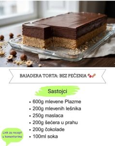 Kada je kolač kompletiran, sledi faza hlađenja. Ostavite ga u hladnjak da se stegne, kako bi se svi slojevi povezali i dobili stabilnu strukturu. Najbolje bi bilo da odstoji preko noci.