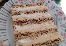 Kada smo sve prethodno pripremili nastavljamo dalje. Tijesto izvadite iz frižidera i razvucite ga u oblikpravougaonika tj. za tepsiju dimenzije 40×26 cm. Položite razvijeno tijesto u podmazan ili papirom obložen pleh, pazeći da ga pravilno rasporedite i po ivicama. Preko tijesta ćemo staviti nadjev od oraha koji ćete lagano utiskivati kako bi ste izravanali. Na orahovu podlogu ide sirna smjesa – rasporedite je kašikom ili špatulom tako da pokrije cijelu površinu. Na kraju iz zamrzivača izvadite tijesti i dok je još tvrdo naribajte preko kreme sa sirom.