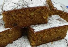 Uzmite pleh srednje velicine i oblozite pek papirom ili ga lagano podmazati uljem i posuti brašnom. Smesu ravnomerno izlijte i poravnajte površinu. Pecite u vec zagrijanoj rerni na 180 stupnjeva, kako bi temperatura bila stabilna kada kolač stavite na pečenje.