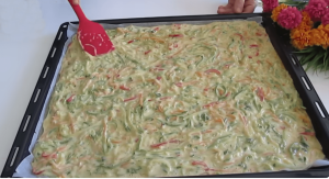 Kada smo prirpmili povrće krećemo sa izradom glavne smjese. U malo većoj zdjeli pomiješajte jaja i mlijeko i mutite dok se sastojci ne sjedine. Zatim se u smjesun postepeno dodaje brašno, uz stalno miješanje kako bi se izbjegle grudvice. Cilj je dobiti glatku, blago gustu smjesu koja će tokom pečenja držati sve sastojke na okupu.