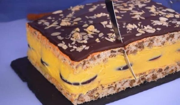 malo protresite te pecite u zagrijanoj rerni na 180 stepeni 20 minuta. Pecenu koru podijelite na 2 jednaka dijela.