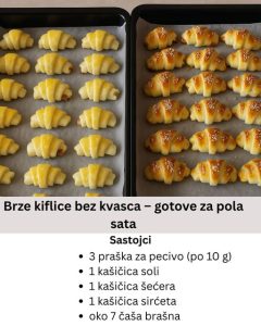 Formirane kiflice se ređaju u pleh oblozen pek papirom, ostavljajući malo razmaka između njih. Pre pečenja se premažu umućenim žumancetom, što će im dati lepu, sjajnu i zlatnu koricu.