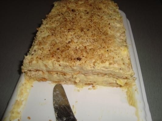 Skuhajte puding sa 750 mililitara mlijeka i 6 zlica secera. Zatim ostavite neka se ohladi. Onda umutite maslac sa secerom u prahu. Slag umutite prema upustvu sa vrecice. Kada se puding ohladi dodajte umucen maslac i slag pa sve dobro sjednite. U smjesu dodajte mljevene orahe.
