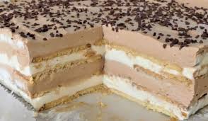 Na ohlađeni biskvit koji je već upio čokoladno mlijeko nanosi se prvi sloj – tamna krema.