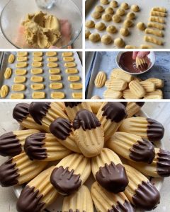 Rernu zagrijete na 180 stepeni. Kada se rerna zagrijala stavite kolačće na pečenje oko 15 minuta u zagrijanoj rerni na 180 stepeni. Kolačići treba da se iskeu ali da ne promijene boju. Dok se keksići hlade, na pari ili u mikrotalasnoj rastopite čokoladu. Kolačiće pažljivo umočite do pola u otopljenu čokoladu, pa ih odložite na papir za pečenje da se čokolada stegne. Ova poslastica je i veoma praktična jer keksići dugo ostaju sveži ako se čuvaju u hermetički zatvorenoj kutiji. Idealni su za posluženje gostima, ali i za svakodnevno uživanje.