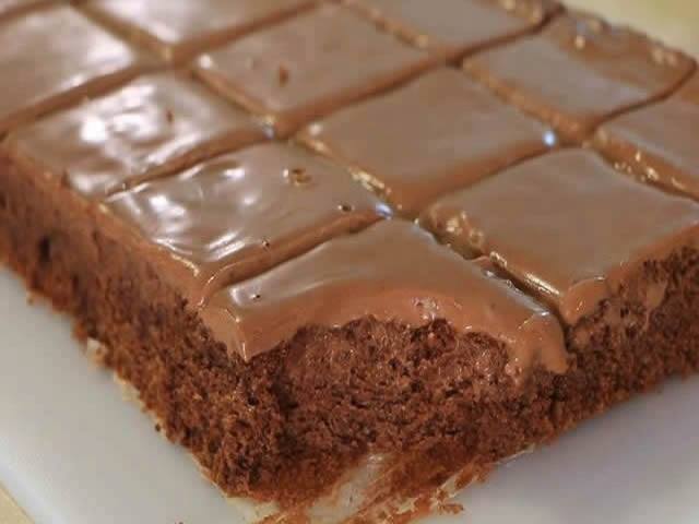 Varjacom umijesajte brasno i prasak za pecivo onda rastopljenu cokoladu i margarin. Odmah izlijte u tepsiju i pecite oko pola sata.