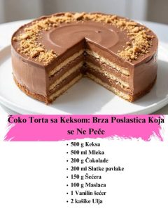 Prvo spremite sve sastojke pa onda pocnite sa pripremom, krenite sa pripremom cokoladnog krema koji cini osnovu ove torte. U šerpu naspite oko 400 mililitara mlijeka a ostatak ostavite za natapanje keksa. U mlijeko dodajte secer i vanila secer pa zagrijavajte na umjerenoj temperaturi. Mešanje je poželjno kako bi se sastojci ravnomerno rastvorili i kako ne bi došlo do zagorevanja.