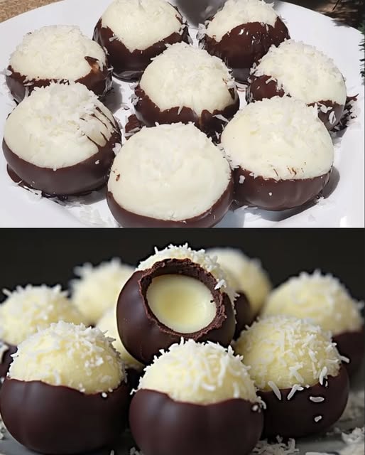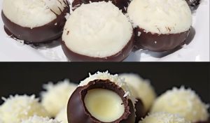 Ohlađene kokos kuglice se zatim, jedna po jedna, umaču u istopljenu čokoladu. Najlakše je koristiti viljušku ili mali štapić, kako bi višak čokolade mogao da se ocedi. Nakon toga se kuglice vraćaju na papir za pečenje ili rešetku, gde se ostavljaju da se čokoladni sloj stegne. Po želji, dok je čokolada još mekana, mogu se posuti dodatnim rendanim kokosom radi dekoracije.