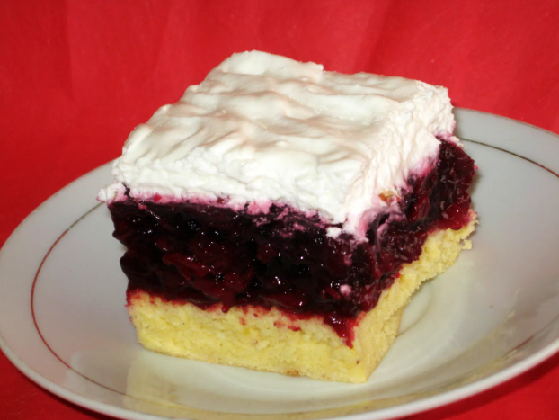 U vruci puding umijesajte visnje i istresite po biskvitu. Ostavite da se ohladi.