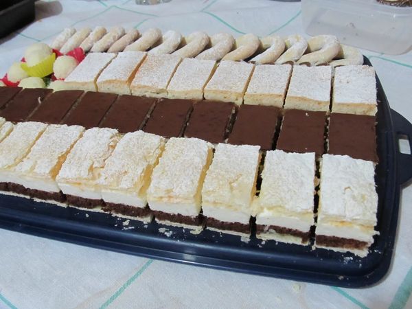Pripremljenu smjesu za biskvit izlijte preko lisnatog tijesta u tepsiji i nastavite peci jos 35 minuta.