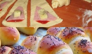 Na širi kraj svakog trougla stavite malo kečapa, rasporedite šunku, dodajte kačkavalj i sve pospite origanom. Nakon toga zarolajte trouglove od šireg ka užem kraju, formirajući kiflice. Poređajte ih na pleh koji oblpozen pek papirom. Ostavite ih da odstoje pola sata – to će omogućiti da se dodatno podignu prije pečenja.