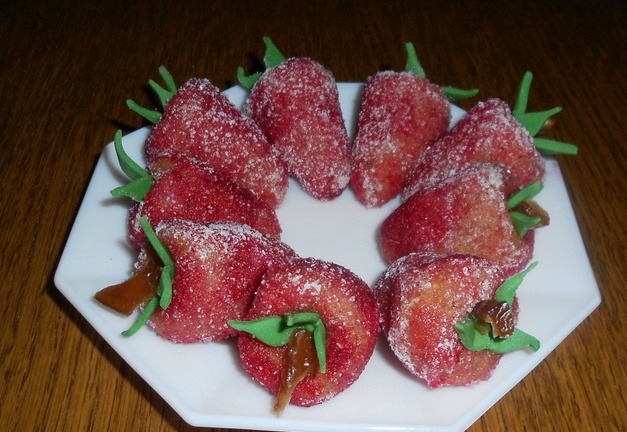 Sve to dobro izmijesajte pa komade velicine oraha oblikujte u jagode.