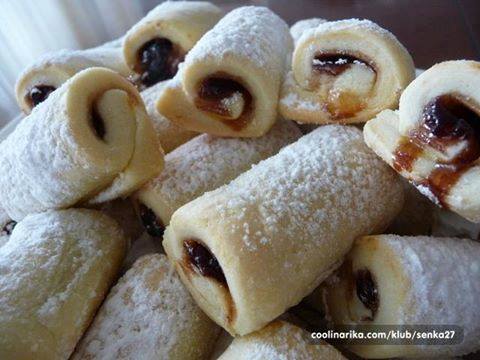 zatim na duze strane pravougaonika mazize dzem te poklopite jednim slojem tijesta a zatim premazite sa zumancetom te opet preklopite tijestom.
