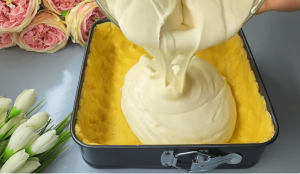 U nekoj vecoj posudi sjedine krem sir i šećer i miksaju dok smjesa ne postane glatka i bez grudvica. Onda se dodaje vanilija, a potom jaja, jedno po jedno, pažljivo miksajući nakon svakog dodatka kako se smjesa ne bi previše umutila. Poslije toga se pažljivo umiješaju kondenzirano mlijeko, ananas i kokos. Ova mješavina postaje izuzetno mirisna i bogata teksturom, s notama koje podsjećaju na koktel u zalazak sunca.