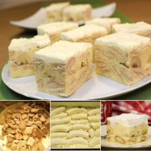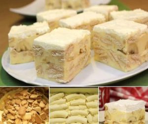 Na sloj kreme redaju se banane, koje su prethodno isečene po dužini. Oko 4 do 5 zrelih banana biće dovoljno da se pokrije srednji sloj. Banane se slažu tako da se međusobno dodiruju, praveći gust sloj voća koji unosi slatkoću i prirodnu vlagu u kolač.