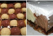 Kremu podijelite na dva dijela. U prvi dio stavite rastopljenu bijelu cokoladu a u drugi rastopljenu cokoladu sa ljesnjacima.