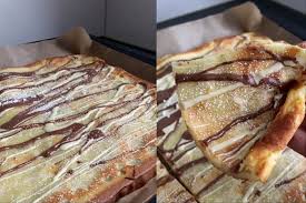 Smesu ravnomerno rasporedite po plehu, izlijevajući je u jedan sloj. Pokušajte da smesa bude ujednačena i da ne bude pregusta na nekim mestima. Stavite pleh u prethodno zagrejanu rernu i pecite 15-20 minuta, dok površina ne postane blago zlatno-smeđa, a smesa se stabilizuje i čvrsto drži oblik. Tokom pečenja, palačinke će se podići i formirati lepe, mekane slojeve.