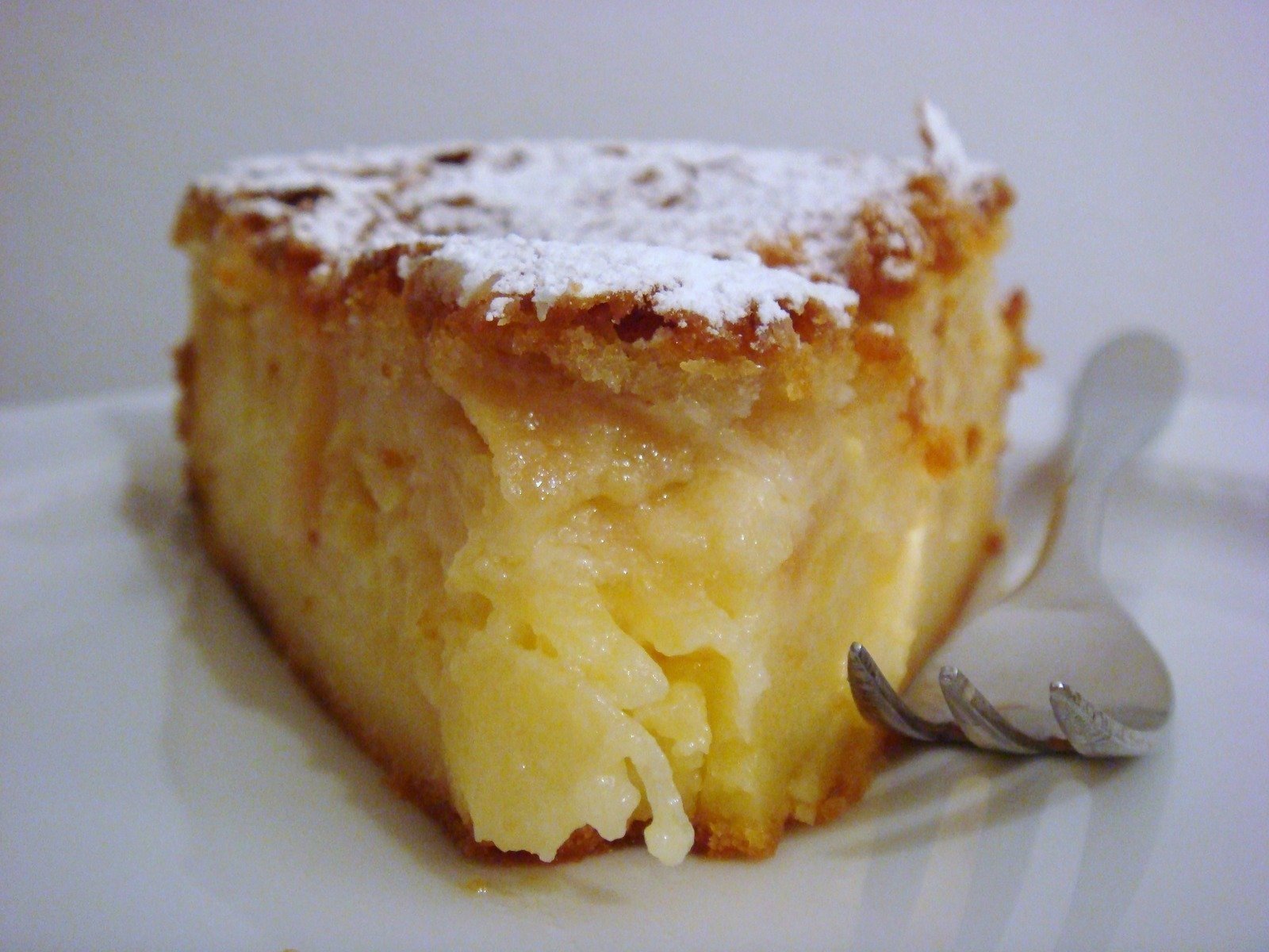 Smjesu istresite u kalup i pospite secerom. Pecite kolac na 175 stepeni oko sat vremena. Kada se kolac ispece treba odozgo dobiti lijepu koricu koja se lista. Servirajte ga sa kremom od vanile ili tucenim slatkim vrhnjem.