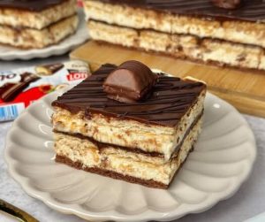 Kada se torta dovoljno ohladila, izvadite je i nanesite drugi sloj kreme – onaj koji je prethodno bio u frižideru. Poravnajte površinu i završite još jednim slojem keksa. Na taj način stvarate savršen balans između mekoće kreme i čvrstoće keksa.