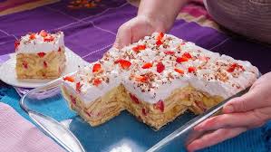 Osvježavajuć i privlačan desert koji se može služiti u gotovo svakoj prilici – od porodičnih ručkova do neformalnih okupljanja sa prijateljima. Tekstura kolača je kombinacija kremastog i mekog, dok jagode donose voćnu sočnost koja se savršeno nadopunjuje s biskvitima i blagim ukusom pudinga.