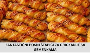 Kada su slojevi formirani, tijesto se razvalja do umjerene debljine. Premazivanje kečapom donosi blagu kiselkastu notu i dodatnu vlažnost, a sjemenke poput susama, lana ili suncokreta daju hrskavost i vizuelnu privlačnost. Važno je posuti ih u dovoljnoj količini kako bi se lijepo uhvatile za površinu.