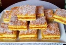 Dok je krema jos tople prelijte preko pripremljenog biskvita koji ste prethodno izbockali sa viljuskom.
