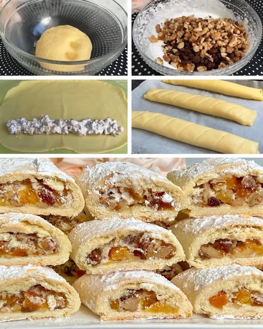 Punjenje je srce ovih kolačića, jer donosi intenzivan miris i okus. Kombinacija suhog voća i oraha daje bogat, gotovo karamelast osjećaj, dok umućeni bjelanjak omogućava da se sve te namirnice lijepo povežu.