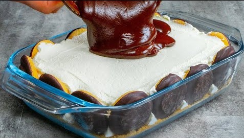 Prvo pomijesajte keks sa istopljenim puterom i sjedinite. Stavite u kalup i dobro utisnite. Po obodu kalupa poredajte jafa keks.