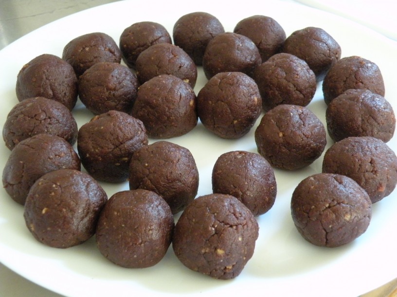 Najbolje rukama sjedinite smjesu,stavite u hladnjak pola sata pa onda oblikujte kuglice ili oblike po zelji.