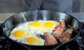 Kad slanina porumeni i pusti mast, pridodajte joj jaja, neprekidno sve miješajući.