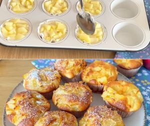 Prethodno zagrijte rernu na 180 stupnjeva. Kolač ili mafini se stavljaju u sredinu rerne i peku otprilike 35 do 40 minuta. Najpouzdaniji način da proverite da li je kolač gotov jeste klasični test čačkalicom – ako izađe suva iz sredine kolača, vreme je da se izvadi. Površina treba da bude zlatno-smeđa, dok unutrašnjost ostaje meka i vlažna zahvaljujući jabukama i jogurtu.