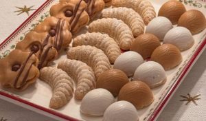 Prvi deo testa namenjen je klasičnim kiflicama. Testo se uzima u manjim količinama i utiskuje u kalup za kiflice. Ovaj način oblikovanja daje prepoznatljiv izgled i ravnomerno pečenje. Kiflice se peku u zagrejanoj rerni na 180 stepeni, otprilike 12 do 15 minuta, dok ne dobiju blago zlatkastu boju. Nakon hlađenja, po želji se mogu posuti šećerom u prahu. Rezultat su nežni, prhki kolači koji se tope u ustima.