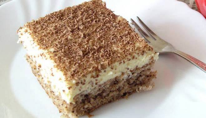Skuhati puding, mlijeko i šećer, zatim ohladiti te umiješati razrađeni maslac. Sve dobro izmiksati i sa tom kremom premazati biskvit u limu za pečenje. Kremu posipati nariba