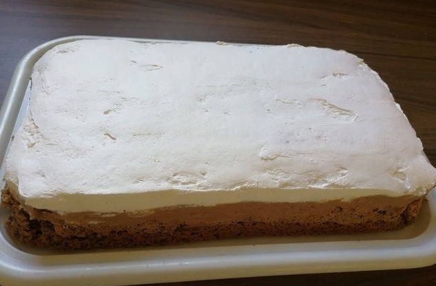 U zumanjce dodajte takodje 100 grama secera i miksajte. Nakon toga dodajte 5 kasika hladne kafe,100 grama oraha,5 kasika brasna,3 kasike ulja,1 prasak za pecivo o smjesu od bjelanaca.
