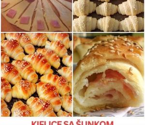 Testo se seče na trouglove, slično kao za klasične kroasane. Na širi kraj svakog trougla stavite punjenje, koje može sadržavati: