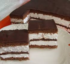 Gotov biskvit zaviti u vlažnu krpu i kad se ohladi premazati kremom(sve samo izmiksamo),zarolati.sve preliti čokoladnom glazurom.