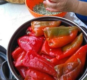Kada sjedinite sve sastojke dobija se mirisna i blago pikantna smesa. Svaka paprika se puni ovim nadevom, i to ne pretrpano – dovoljna je jedna vrhom puna kafena zličica po paprici. Nakon punjenja, paprike se pažljivo ređaju jedna preko druge u duboku posudu – može to biti plastična vangla ili veći lonac. Važno je da se pritisnu i pokriju čistom kuhinjskom krpom ili odgovarajućim poklopcem i ostave da odstoje na sobnoj temperaturi najmanje dva do tri dana. Tokom tog vremena, paprike će ispustiti prirodan sok, koji će kasnije poslužiti kao tečnost za nalivanje u tegle.