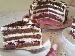Kada je biskvit ohlađen, seče se po dužini na dva jednaka dela. Oba dela se pažljivo natapaju sačuvanim sokom od višanja – ovo ne samo da dodatno obogaćuje ukus, već i osigurava vlažnost deserta. Prvi sloj biskvita se premaže obilnim slojem umućenog šlaga, preko kojeg se poređaju oceđene višnje. One se, zatim, pokrivaju još jednim slojem šlaga, koji treba biti ravnomeran i bogat.