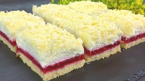 Onda sipajte kokos i lagano umešajte. Sipajte fil preko voćnog želea. Ukrasite rendanom belom čokoladom i ostavite da se ohladi u hladnjaku 2 sata.