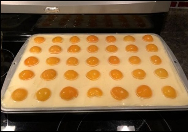 Ohlađen biskvit poškropiti sokom iz kompota, premazati ga hladnom kremom, na kremu poslagati polovice marelica iz kompota te sve to preliti sa preljevom za torte.
