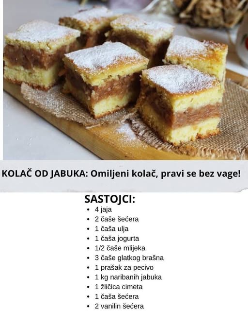 Kada se smjesa zagrije i omekša, skida se s ringle, a potom se dodaju cimet i griz. Cimet daje toplinu i aromu koja je nezamjenjiva u ovakvim kolačima, dok griz upija višak tečnosti i čini nadjev kompaktnijim. Ako nakon miješanja vidite da je jabukama ostalo još tečnosti, sasvim je prihvatljivo dodati još nekoliko zlica griza. Nakon toga, nadjev treba ostaviti da se hladi dok se priprema tijesto za biskvit.
