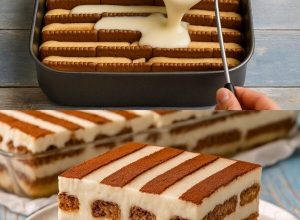 – Ponovo se sipa sloj pudinga, zatim ide novi red keksa, pa puding i opet piškote.