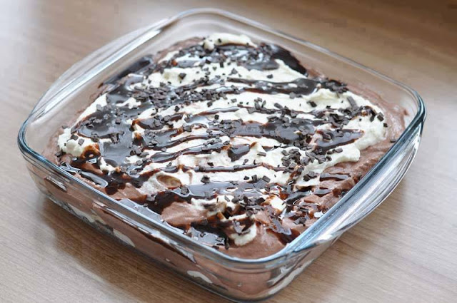 Na kraju premažite ostatkom šlaga, pospite čokoladnim mrvicama i poslužite hladno!