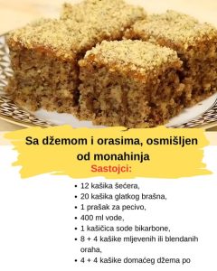Kada se osnovna masa sjedini, dodaju se mleveni orasi i deo džema. Orasi ce dati bogatiji ukus i blagu teksturu, ali ako ih nemate ili želite varijaciju, mogu se bez problema zameniti lešnicima ili čak bademima. Što se džema tiče, izbor je potpuno slobodan. Kombinovanje različitih ukusa može dati zanimljiv rezultat, na primer korišćenje džema od šljiva u testu, a od kajsija ili breskve za završni sloj.