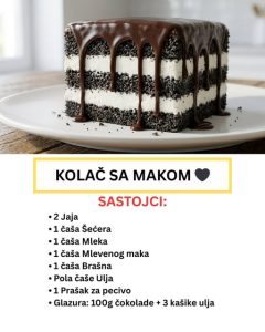 Dok se kolač nalazi u rerni, može se pripremiti čokoladna glazura koja će mu dati završni izgled. Postupak je veoma jednostavan i zahteva samo dva sastojka. U manjoj šerpi ili posudi iznad pare otopi se čokolada za kuvanje. Zatim se dodaju tri kašike ulja i sve se meša dok se ne dobije glatka i sjajna smesa. Ulje pomaže da glazura ostane mekša i da se lakše razliva po površini kolača.