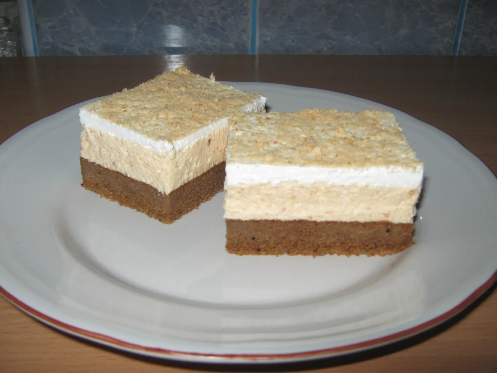 Umutite slatku pavlaku onda dodajte secer u prahu kiselu pavlaku i mljeveni keks pa sve sjedinite.